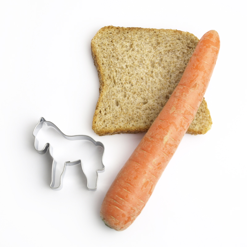 Pferdesnacks: Stechen Sie aus Kohlrabi und Paprika Pferde aus und lassen Sie damit das Pausenbrot zum Vergnügen werden. Zum Ausstechen von Broten eignet sich dieser Ausstecher nicht so gut, da die Beine leicht abbrechen können.