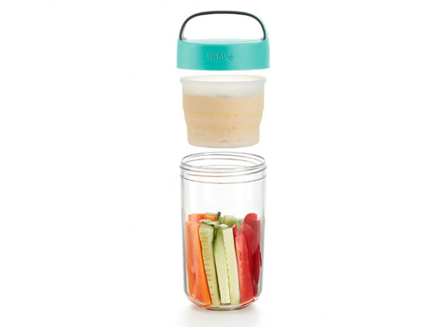 Sie und Ihr Kind lieben es Müsli oder verschiedene Snacks mitzunehmen? Dann ist dieses flexible Jar to go genau das Richtige. In 2 getrennten Behältern mit gesamt 600 ml Fassungsvermögen lassen sich nach Lust und Laune Snacks wie Gemüsesticks, Dips, Joghurt, geschnittenes Obst, Knabbergebäck, Suppen, Müslis und vieles mehr mitnehmen.