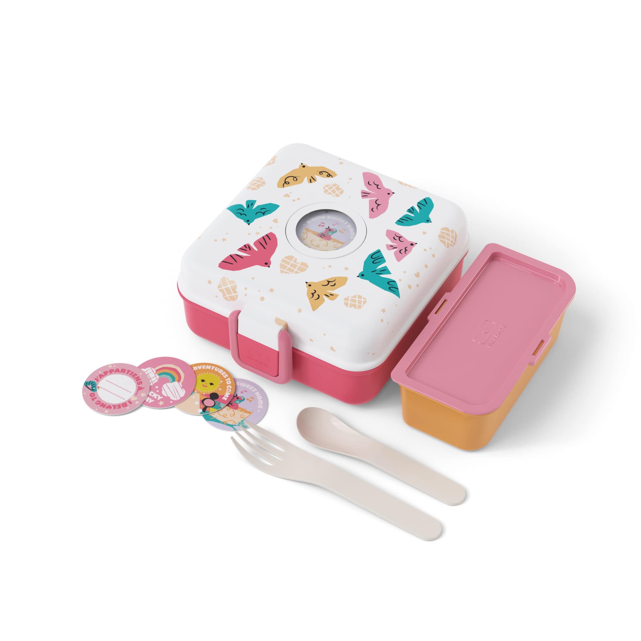Die Box hat ein Fassungsvermögen von 850 ml und kommt mit einer kleineren Box um das Essen besser trennen zu können. Damit können warme und kalte Speisen, süßes und saures und noch vieles mehr zusammen transportiert werden. Ein Besteckset bestehend aus Löffel und Gabel ist ebenfalls enthalten und kann im Deckel verstaut werden.