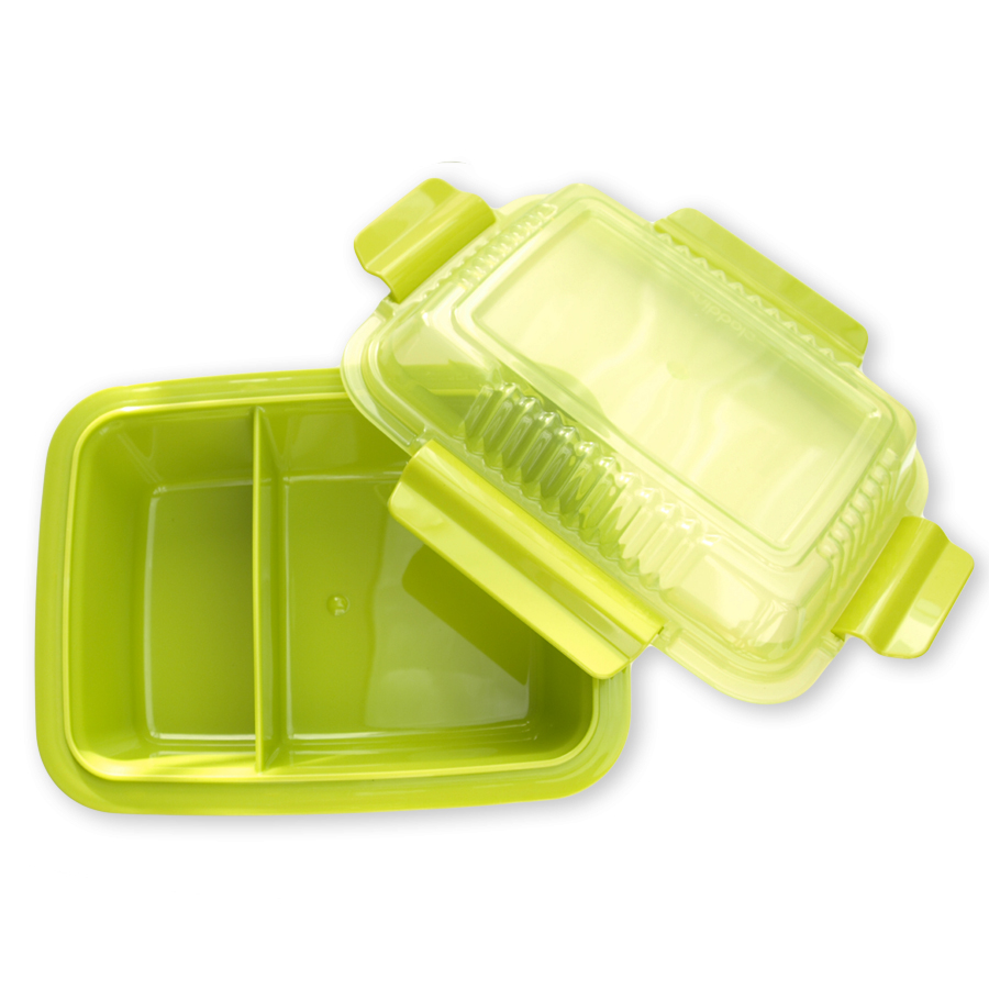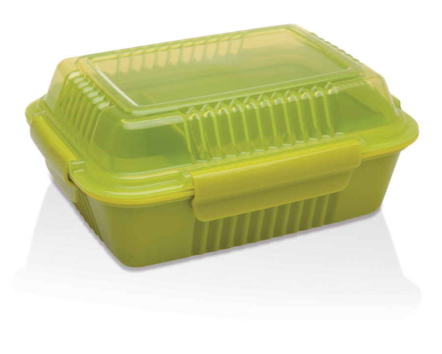 Die perfekte Größe um eine komplette Mahlzeit unterwegs zu genießen. Der praktische Trennsteg sorgt dafür, dass 2 Gerichte getrennt von einander mitgenommen werden können.