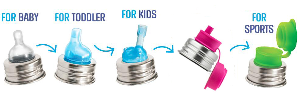 Jede Purakiki Flasche lässt sich mit jedem Purakiki Aufsatz benutzen und ermöglich so eine lange Benutzung der Flaschen. Vom Baby- bis zum Erwachsenenalter stehen 5 verschiedene Aufsätze zur Verfügung (diese können separat erworben werden)
